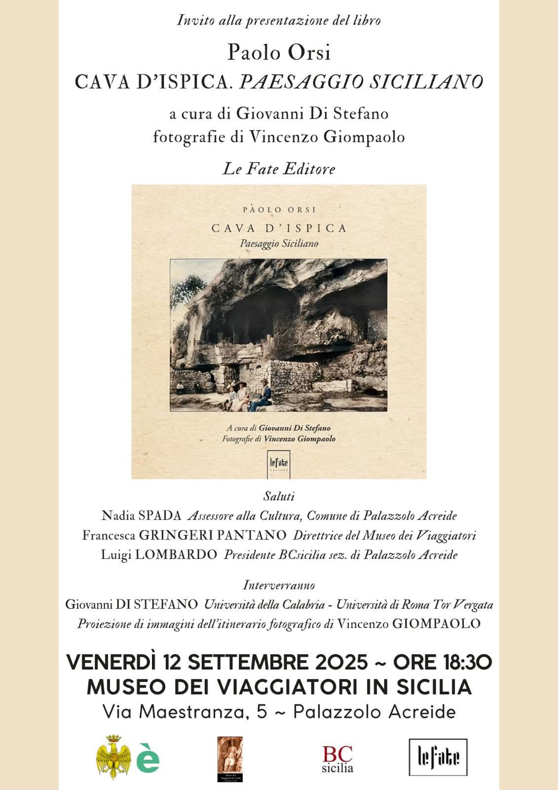Interverranno Nadia Spada, Assessore alla Cultura del Comune di Palazzolo Acreide, Francesca Gringeri Pantano, Direttrice del Museo dei Viaggiatori, Luigi Lombardo, Presidente BCsicilia sede di Palazzolo Acreide.