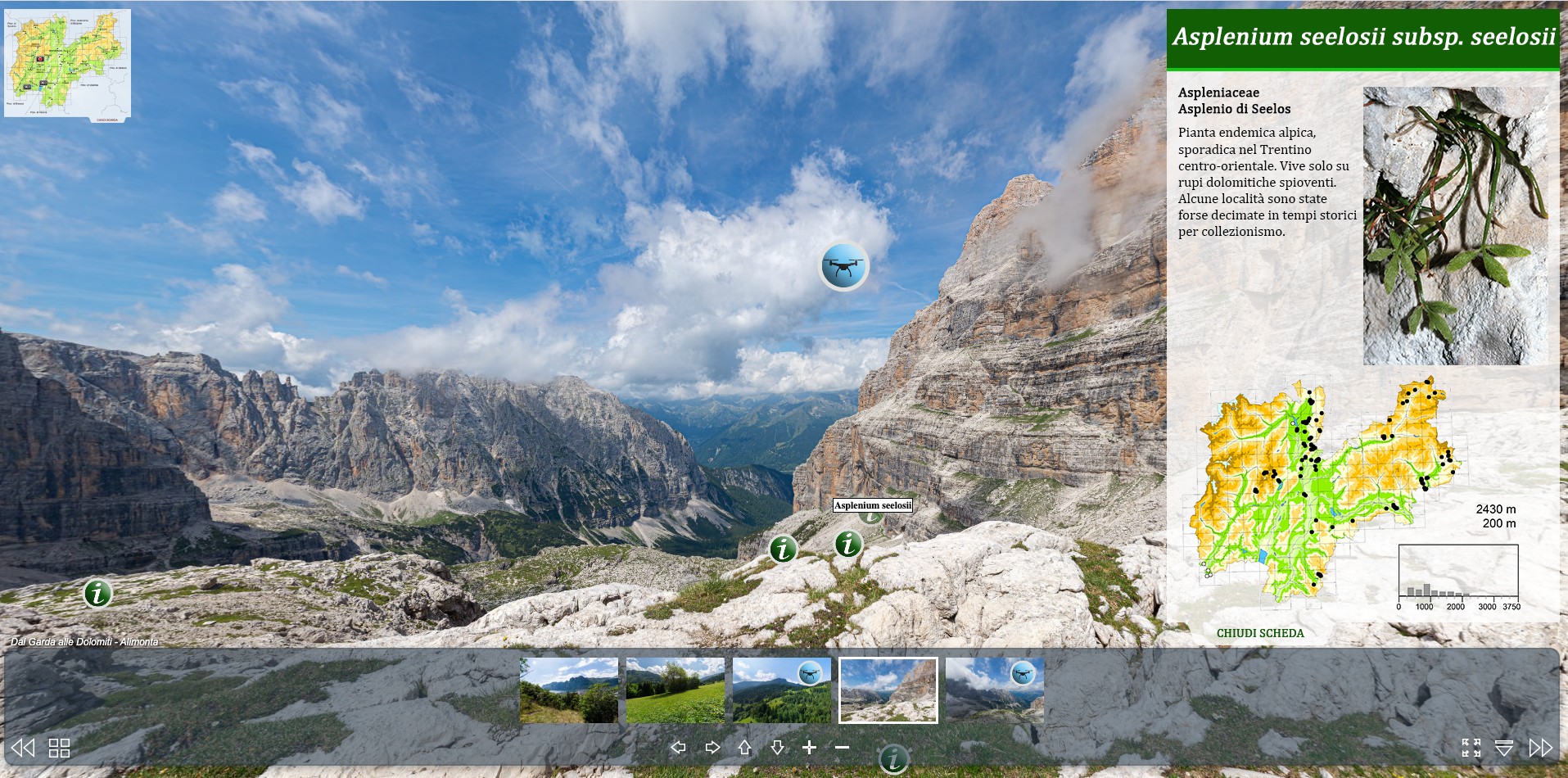 Abbiamo cercato di portare nelle vostre case il virtual tour a 360 gradi, curato da Marco Stucchi e Matteo Visintainer nella progettazione e nello sviluppo software così come nella realizzazione delle immagini aeree e sferiche ad alta risoluzione, in collaborazione con la nostra sezione Botanica per quanto riguarda i contenuti.